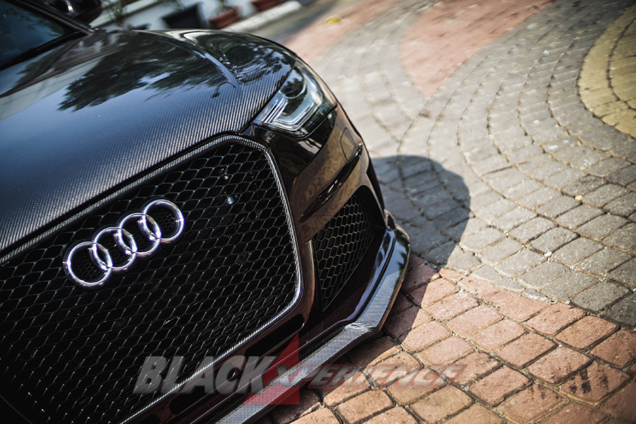 Sektor eksterior juga cukup berubah ekstrim. “Bagian bonnet depan saya convert menggunakan RS4 Wagon 2016-2017, mulai dari grille hingga kap mesin. Sedangkan lampu belakang serta ducktail menggunakan S4 dari versi sedan. Secara system menggunakan RS5, pada kecepatan tertentu ductail bisa membuka sendiri, dan ketika kecepatan menurun bisa menutup sendiri. Sedangkan untuk widebody, dikerjakan secara detail di platinum motorsports. Menggunakan line desain seperti mobil aslinya, meminimalisir distorsi,” aku Leon yang bingung dengan warna mobilnya garapan Platinum Motorsport di Cipinang, Jaktim. Pasalnya meski terlihat, hitam, red maron di siang hari, bisa berubah menjadi candy, dan blue pada malam hari.