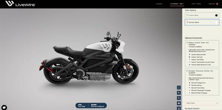 Sepeda motor listrik baru dari Harley-Davidson disebut LiveWire One. motor Ini dibanderol dengan harga $21,999 dengan memperhitungkan pajak, tetapi menurut Harley-Davidson, harga akhir harusnya akan berkisar sekitar $19,799 setelah diperhitungkan. Untuk harga itu, LiveWire One memiliki sejumlah fitur untuk ditawarkan. Motor ini memiliki jangkauan kota dan jalan raya masing-masing 146 dan 95 mil, sistem Pengisian Cepat DC yang dapat mengisi daya motor dari 0 - 100 persen hanya dalam waktu 60 menit, serta IMU 6-sumbu yang dapat "melacak, mengukur, dan mengantisipasi perubahan". LiveWire One juga dapat dipersonalisasi dengan mode mengemudi khusus, memungkinkan pengendara untuk mengubah mode berkendara sesuai keinginan mereka. Dan yang terpenting, motor ini tersedia dalam warna Liquid Black dan Horizon White.