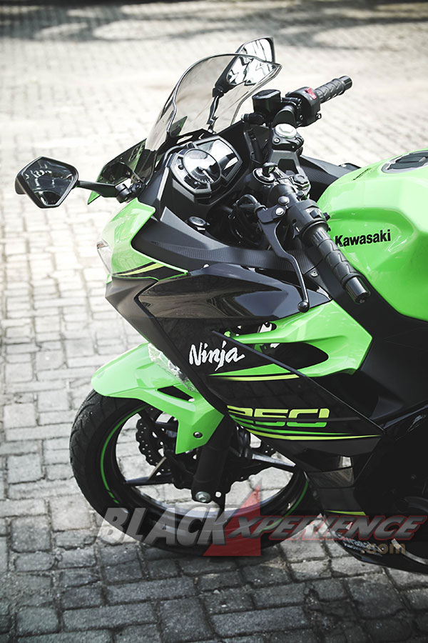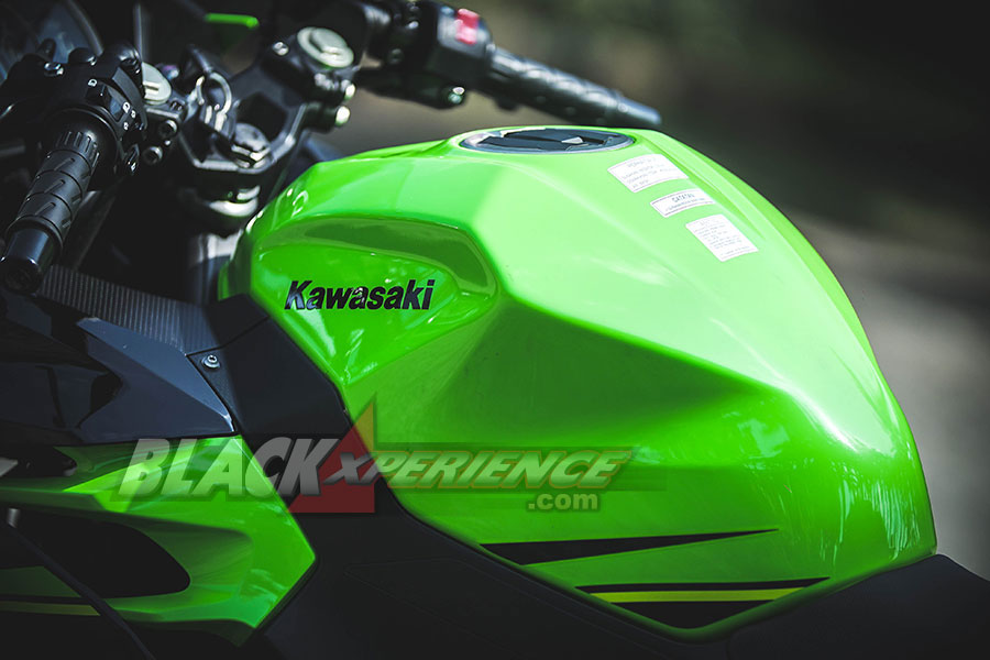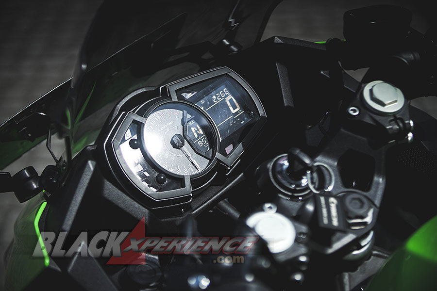 Lebih jauh, yang berkontribusi lebih pada gaya motor besar di motor ini adalah instrumen kluster analog-digital yang pinjam langsung dari kakaknya Ninja 650 dan Ninja 1000 yang lebih besar. Ini adalah unit yang relatif sederhana, tetapi layar LCD –nya terlihat rapi dan menyegarkan berbeda dari layar LCD digital sepenuhnya yang menjadi hal yang biasa sekarang ini. Tingkat kesesuaian dan finishing cukup bagus dan motor terasa seperti produk berkualitas yang Anda harapkan sekelas harga ini.