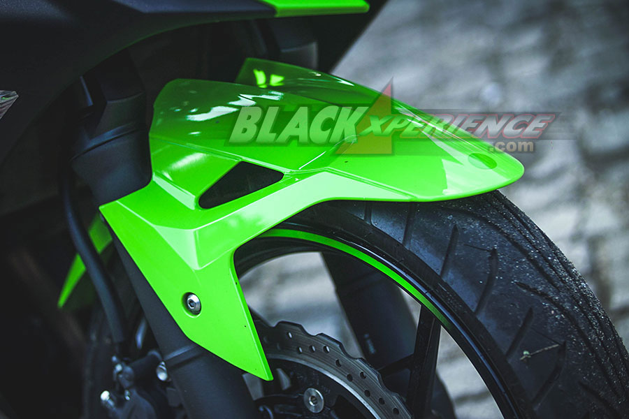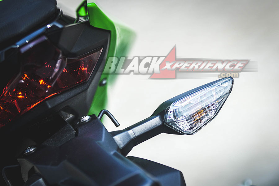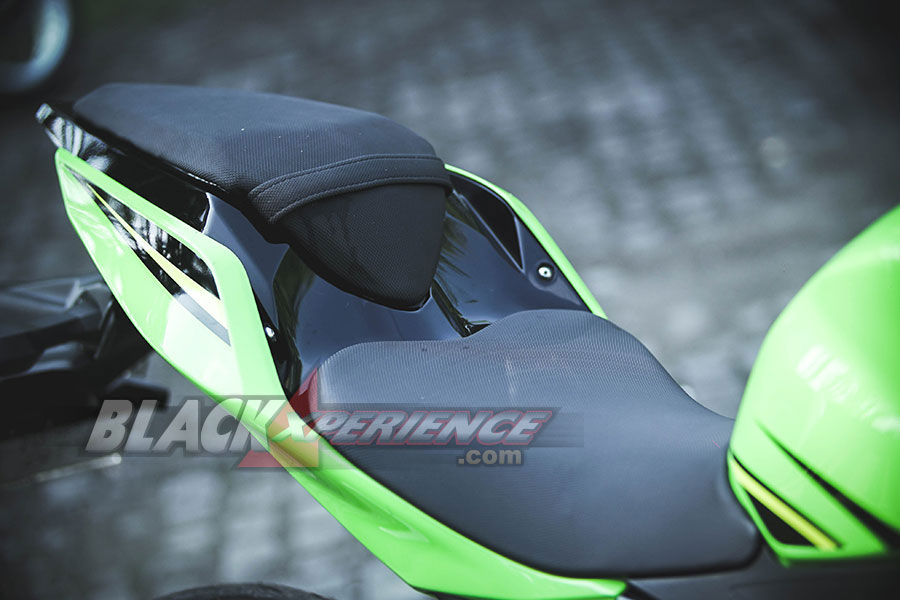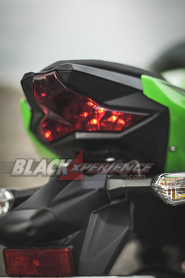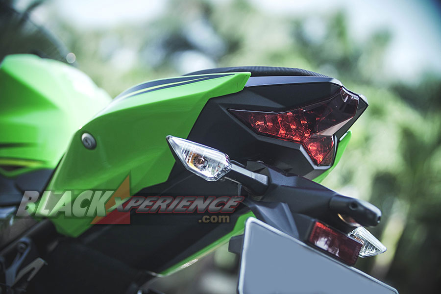 Menempel di sepanjang sisi fairing adalah grafis Kawasaki hitam/hijau yang digunakan tim balap KRT dan ini adalah menjadi model SE yang tersedia saat ini. Bagian belakang dirancang seperti sedikit lebih tinggi ke kursi pembonceng dan lampu ekor LED tiga titik yang indah yang akan mengingatkan Anda akan model moge Z1000 dan ZX-10R.