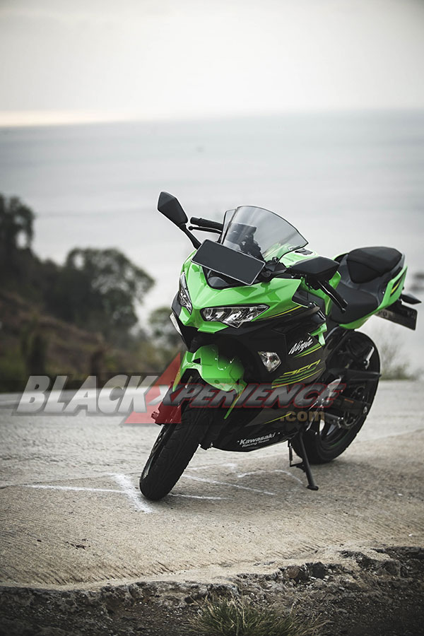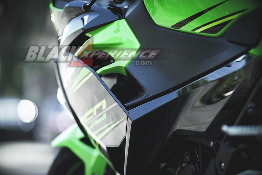Apa yang benar-benar menarik perhatian saya adalah betapa besar motor terlihat dan terasa secara langsung. Fairing terlihat lebih besar dari model 250 sebelumnya, dan, bersama dengan tangki besar dan kokpit modern, rasanya seperti melihat motor sport yang lebih besar dan lebih kekar daripada Ninja 300 dan Z650; meskipun, lembar spek mengungkapkan bahwa ini sebenarnya tidak benar. Demikian pula, kapasitas tangki bahan bakar tampak lebih besar, tetapi sekarang mampu menampung 14 liter Pertamax, dibandingkan dengan 17 liter yang diusung Ninja 250 lawas.