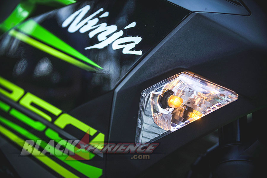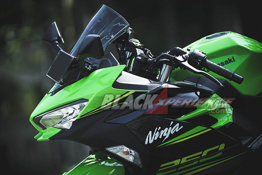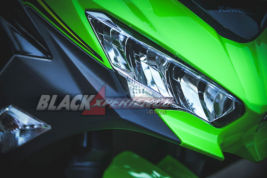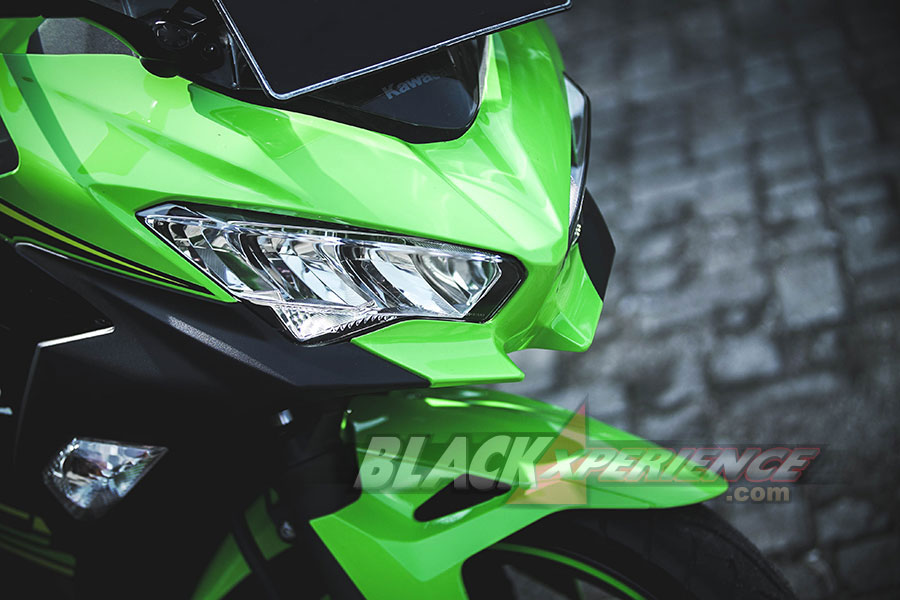 Kawasaki tidak dikenal dengan desain klasik yang indah dan Ninja 250 tentu bukan salah satunya, tetapi ia bangga memakai desain yang biasanya agresif. Batok headlamp yng tajam ini sejalan dengan bahasa desain Ninja yang baru dan meminjam sedikit model H2 supercharged di bagian depan.