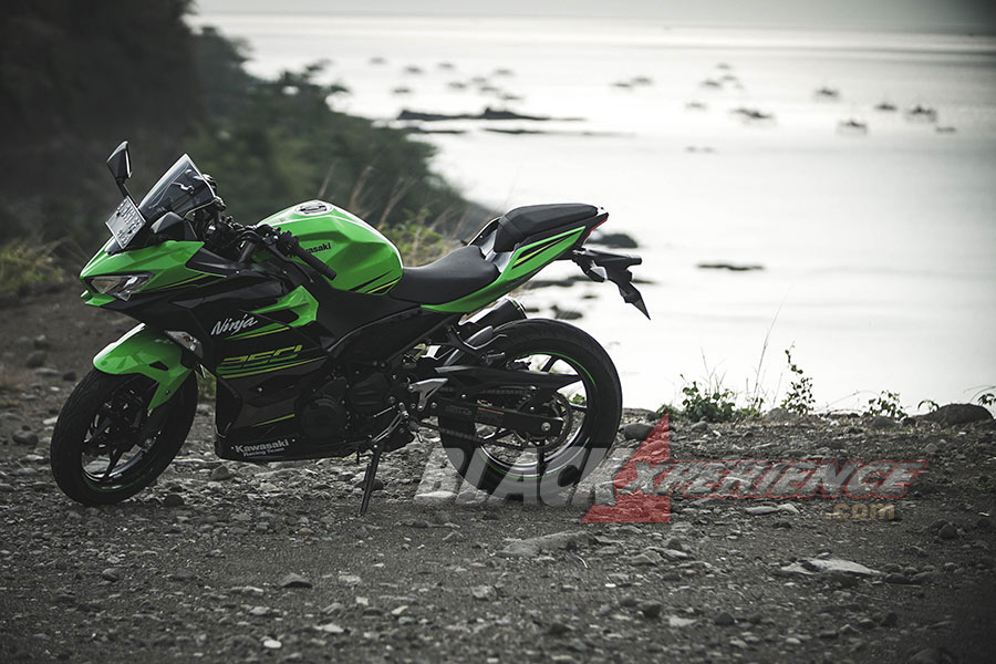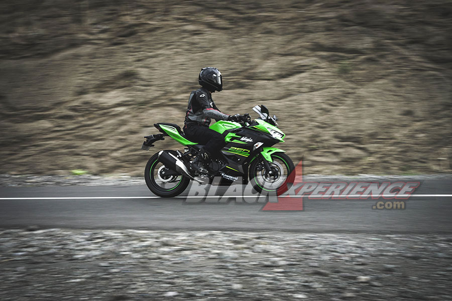 Ini punya dampak langsung pada pengalaman berkendara dan All New Ninja 250 terasa lebih gesit, respon kemudi lebih cepat dan umumnya lebih atletis dan mudah. Lintasan yang indah di Ciletuh basah kuyup, jadi saya tidak bisa memacu dengan keras, tetapi ini jelas merupakan motor dengan handling yang lebih baik dari sebelumnya dan saya yakin itu akan menyenangkan juga di atas trek. Sasis teralis itu memberikan rasa kaku yang baru bagi motor ini, yang menghasilkan rasa percaya diri yang lebih saat menukik di tikungan. Ban Dunlop Sportmax baru juga banyak memberikan traksi ktimbang ban IRC sebelumnya dan kinerja pengereman juga lebih pendek.