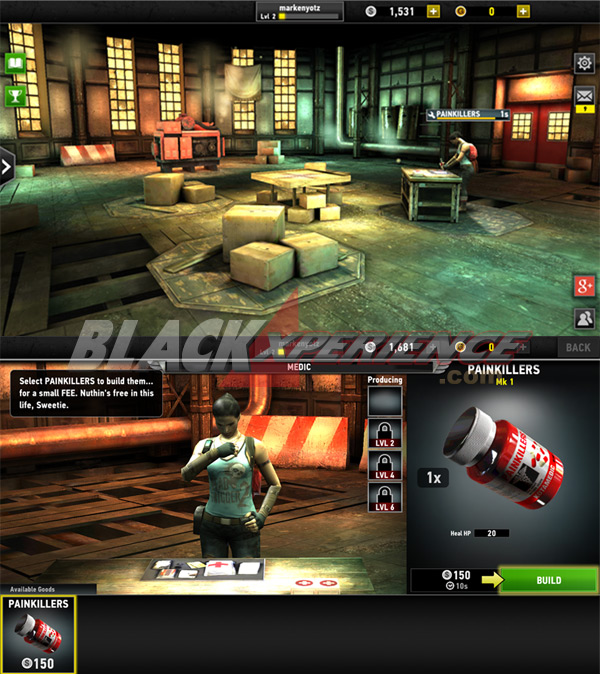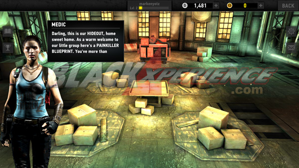 Dalam Hideout kita juga dapat mengambil obat-obatan, senjata, dan item lain yang dapat membantu Anda untuk melalui level-level yang akan Anda hadapi. Namun untuk mendapatkan semua layanan ini Anda terlebih dahulu harus meyelamatkan keempat orang dari sergapan zombie termasuk gunsmith, scientist, smuggler and engineer. Seperti kita sebutkan tadi misi dapat dipilih dari World dan kita juga dapat mengatur kesulitannya sebelum kita memainkannya. Setiap menyelesaikan misi kita akan mendapatkan reward yang dapat digunakan untuk membeli item, upgrade, dan sebagainya. Nah, pola permainannya sesungguhnya cukup sederhana yakni Anda harus membunuh seluruh zombie dan jangan sampai di makan olehnya. Game ini tidak menyuguhkan banyak panduan, namun Dead Trigger 2 termasuk game yang mudah dipahami.