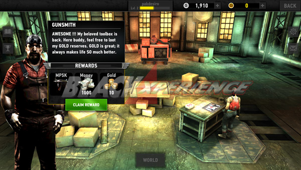 Dalam game ini juga terdapat dua tempat dasar yakni World di mana kita dapat memilih misi atau turnamen yang hendak kita ikuti dan Hideout di mana kita dapat beristirahat, membeli dan meng-upgrade senjata, serta mengatur inventori yang lain. Kadang developer game ini juga memberikan voucher khusus yang dapat gamers manfaatkan untuk membeli item, pilihan ini terdapt dalam menu settings. Dalam menu settings Anda juga dapat mengkostumisasi profil pemain.
