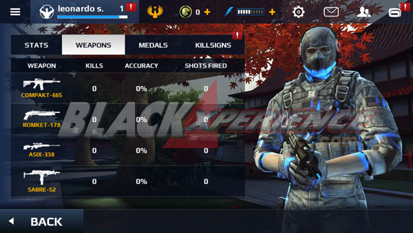 Setelah Anda memilih kelas keprajuritan, Anda akan disuguhkan dengan banyak pilihan senjata. Selain membeli dan upgrade, Anda juga dapat mengkostumisasi senjata Anda dengan menambahakn teropong, peredam, dan sebagainya. Gamers dapat membawa 2 senjata api sekaligus dan selain itu Anda juga dapat membawa senjata biasa seperti pisau, granat, dan drone untuk memindai medan perang.