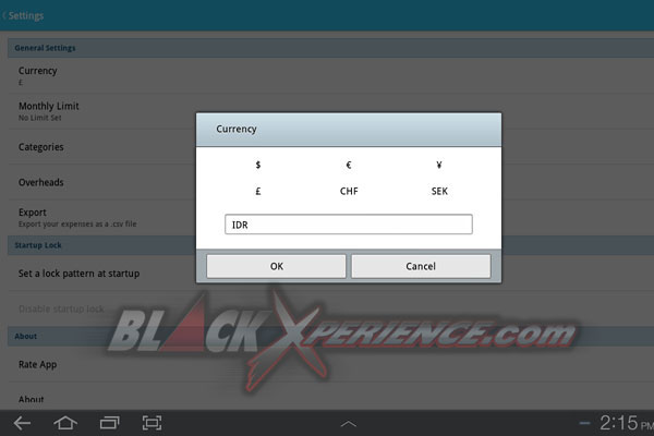 Setelahmengunduhaplikasiini, Andabisalangsungmemilih menu setting untukmenentukankursmatauang. JikapenghasilanAndaperbulandalambentuk Dollar Amerika, mungkintidakmasalah, tapibagaimanakalaupenghasilanAndamasihdalambentuk rupiah?. Aplikasi Expense menawarkankepadapenggunanyauntukmembuatsendirikursmatauang yang diterimanyasebagaipenghasilan.
