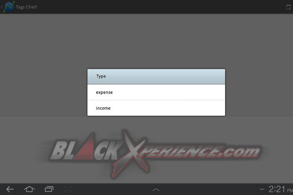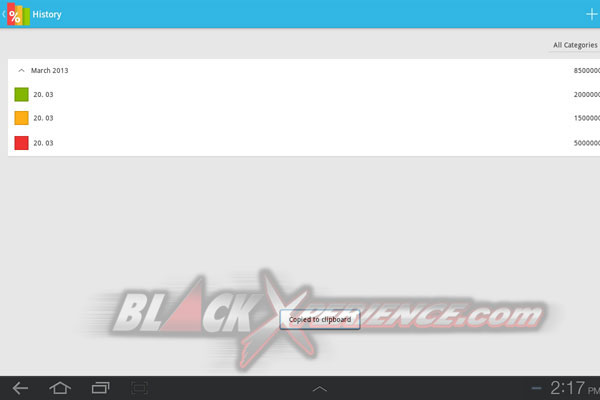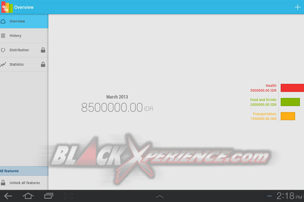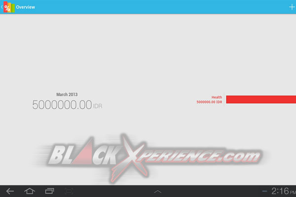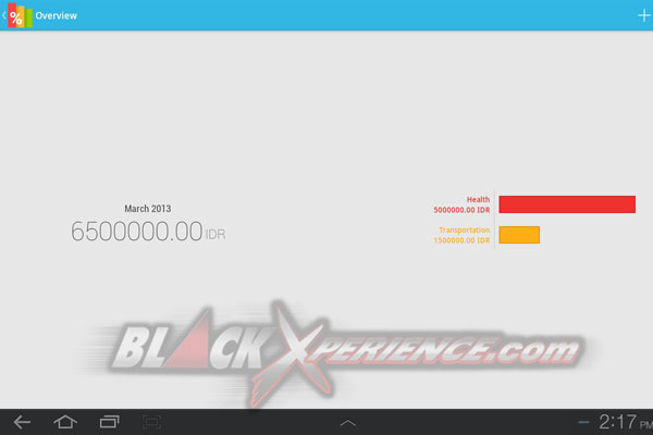 Expense Manager juga memiliki tampilan grafis yang menarik dan tidak membosankan sebagai aplikasi. Hanya dengan menggeser ke kanan, maka Anda bisa melihat catatan-catatan yang sudah Anda buat sebagai pengeluaran dari penghasilan disetiapbulannya.