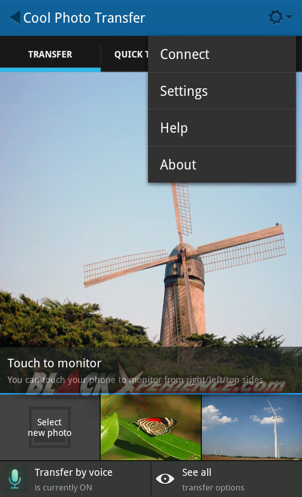 Kini dengan Cool Photo Transfer Anda tidak perlu lagi repot tentang masalah koneksi kabel dari Android ke PC karena aplikasi ini akan dengan mudah menyalin foto Anda lewat koneksi nirkabel WiFi. Tidak hanya itu, keunggulan aplikasi ini terletak pada cara transfer yang unik yaitu dengan gerakan dan suara.