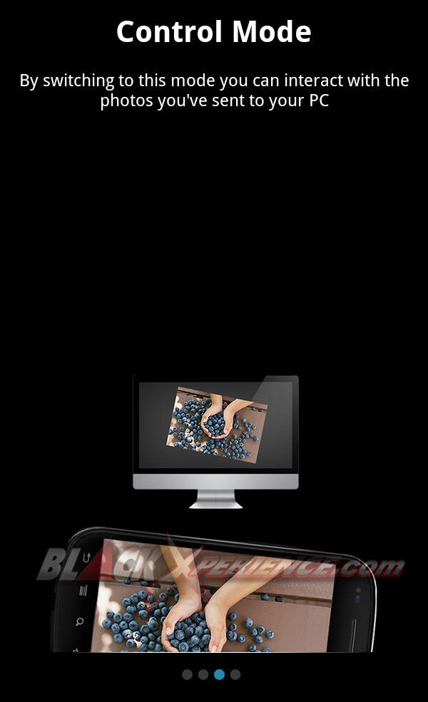 Gambar atau foto akan tampil langsung ke layar PC atau laptop Anda diiringi dengan efek animasi yang cantik. Secara default aplikasi ini belum menyimpan gambar secara otomatis namun hanya menampilkannya di layar PC, tetapi Anda dapat mengaktifkan simpan secara otomatis atau konfirmasi sebelum menyimpan pada menu Settings. Anda bahkan bisa memilih lokasi penyimpanan dan mengatur pola animasi untuk setiap gesture.