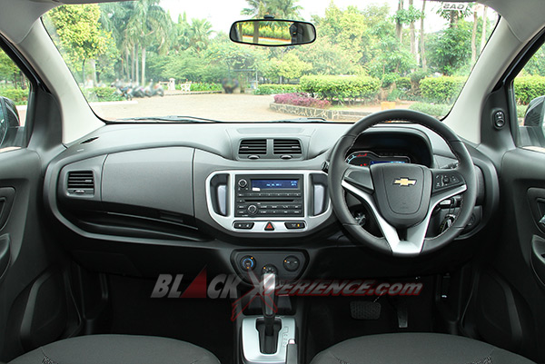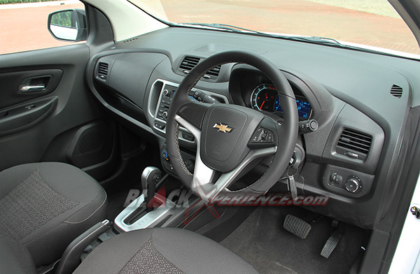 Memasuki interior, kita akan disambut oleh nuansa ruang kabin yang didominasi warna hitam mulai dari dashboard, door trim hingga lapisan bangku, ini disegaja guna menghadirkan nuansa elegant. Lapisan bangku yang lembut dan busa yang cukup tebal memberikan rasa nyaman bagi siapapun yang duduk diatasnya. Melalui desain dashboard yang baru, Chevrolet ingin menunjukkan perbedaan dengan Spin biasa. Tampilan dashboard baru juga membuat kabin Activ lebih berkelas. Bagian tengah dashboard dihuni sebuah perangkat hiburan atau head unit dengan berbagai fitur seperti, radio, USB Port, CD, AUX-IN dan Bluetooth. meski dipenuhi oleh berbagai macam tombol, head unit sangat bersahabat dan mudah sekali untuk dioperasikan.