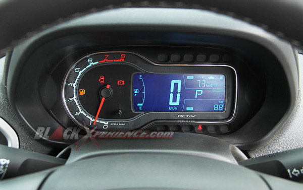 Menambah gairah berkendara layaknya mobil sport, pada bagian lingkar kemudi telah lapisi oleh bahan kulit sehingga terasa mantab untuk di genggam. Dalam upaya mempermudah si pengemudi untuk mengganti chanel radio, kini stir kemudi dilengkapi dengan tombol kontrol audio dan tombol mengangkat telepon. Tidak jauh dari lingkar kemudi ada satu yang menarik disini yaitu, desain instrument cluster yang menyerupai speedometer motor. Kombinasi antara digital speedometer dan analog tachometer menambah kesan berkelas pada mobil ini dan yang terpenting adalah mudah dibaca.
