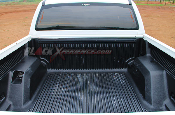 Jika melihat bagian belakang tampak bak double cab yang sangat lebar sekitar 1560 mm memiliki kemampuan menampung banyak barang bawaan. Tak meninggalkan kesan mewah, pada bagian handel pintu bak telah di lapisi krom begitu juga dengan bemper belakang.