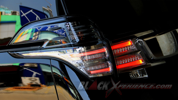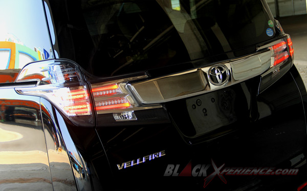 Lanjut ke belakang, Toyota Vellfire 2015 punya rearlamp dengan desain kombinasi baru. Material lampunya memakai LED dan antar dua lampu belakang ini dihubungkan dengan ornamen chrome yang senada grill depan.