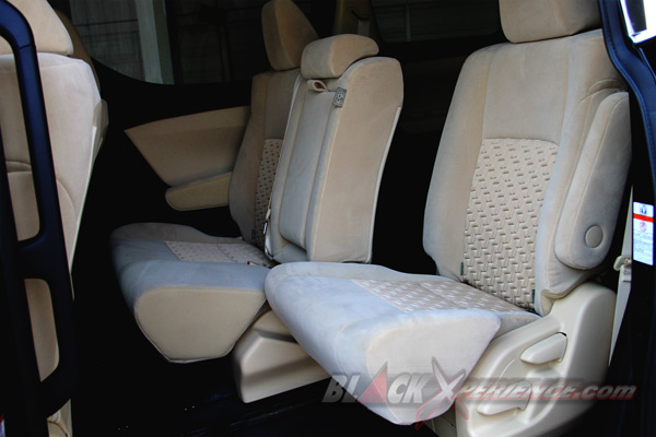 Selain itu ketiga baris jok bisa di maju mundurkan dalam rentang yang cukup lebar, walau untuk menggesernya masih dilakukan secara manual. Jok ini memang absen balutan kulit premium, sebagai gantinya adalah bahan suede dengan permukaan yang lebih lembut. Dan jujur saja kami lebih menyukai bahan seperti ini karena jauh lebih lembut dan lebih cozy untuk berlama-lama duduk di atas permukaannya.