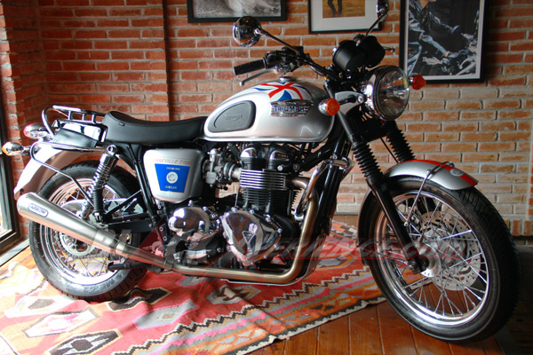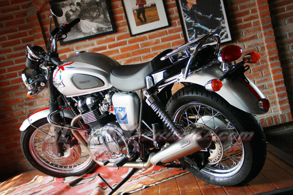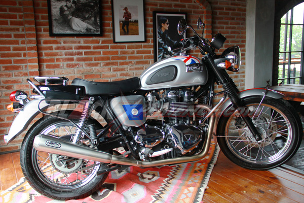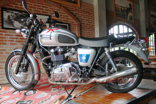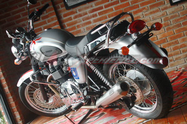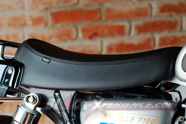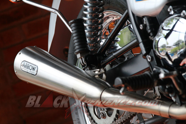 Again... Hal istimewa selanjutnya dari Triumph Bonneville T100 Diamond Jubille yang adalah sentuhan personalisasi tambahan sudah dilakukan. Misalnya kedua knalpot diganti lansiran Arrow, jok model single seater, dan pemakaian rak untuk saddlebag.