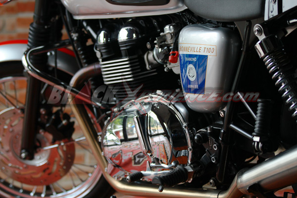 Closer Look Automotive Blackxperience kali ini cukup istimewa, karena kami "bertatap muka" lebih intim dengan Triumph Bonneville T100 Diamond Jubille. Model ini merupakan edisi khusus yang pernah dibuat Triumph persembahan untuk Kerajaan Inggris.