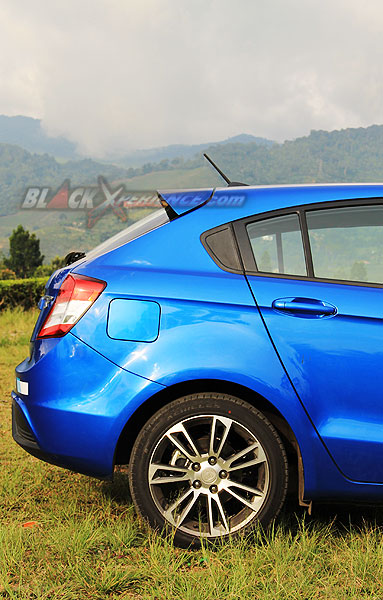 Belakang mobil memiliki desain yang unik dan berani sekaligus menjadi ciri khas Suprima S, jadi wajar saja jika pihak Proton begitu membanggakan bagian belakang mobil. Pada bagian belakang mobil terpasang spoiler atap lengkap dengan lampu LED ditengahnya, lalu desain bemper belakang yang dibentuk sedemikian rupa sehingga terlihat bagaikan diffuser ditambah lampu LED di tengah kian menambah aroma sporty mobil 5 pintu ini. Beralih ke bagian kaki-kaki, pemilihan velg 16 inch palang 7 sangat cocok sekali sehingga membuat mobil yang pada bulan Agustus lalu meluncur di Malaysia tampil lebih sport.