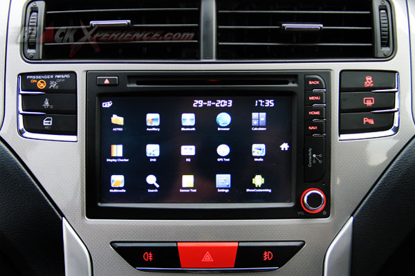 Aroma mewah mulai terasa ketika memasuki ruang kabin, ini ditunjukkan dari seluruh jok yang terbungkus oleh bahan kulit diikuti oleh lingkar kemudi. Ditambah sentuhan karbon kevlar yang memanjang di dashboard lalu dipadu dengan warna silver pada bagian tengah. Terdapat beberapa tombol pengaturan di bagian tengah dan sebuah layar sentuh dengan beragam fitur melimpah diantaranya radio, sistem navigasi, konektivitas USB, Bluetooth, menampilkan kamera saat parkir mundur dan lainnya, yang menarik dari head unit head unit 2 DIN bermonitor ini adalah telah dilengkapi sistem operasi berbasis Android.
