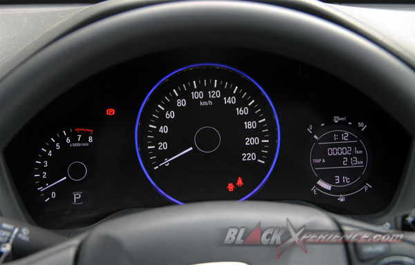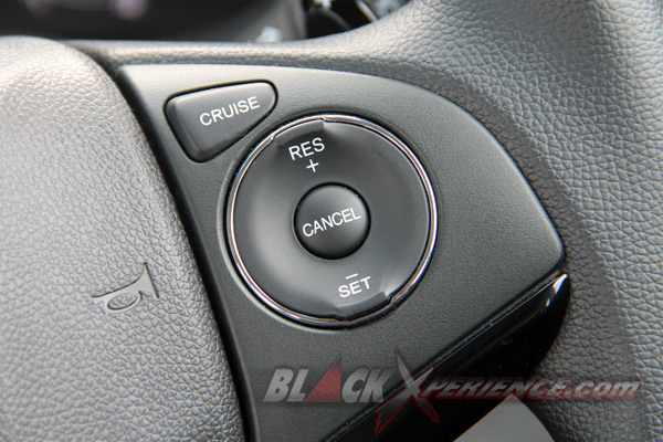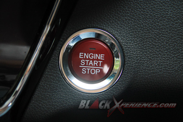 Pikiran kami agak terganggu tatkala tengah menjajal Honda HRV bermesin 1.5-liter SOHC 4 silinder 16 katup i-VTEC ini. Mesin baru bisa bekerja jika pedal rem diinjak dan tombol Start/Stop berwarna merah di tekan. Namun untuk mematikannya cukup memposisikan tuas transmisi di P serta menekan kembali Start/Stop Button tersebut.