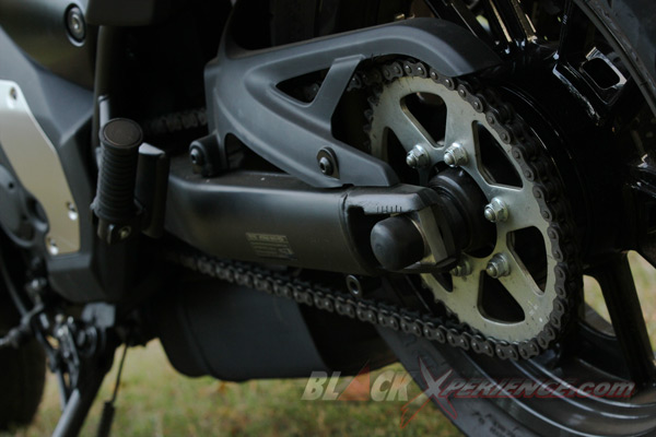 Suspensi Belakang : Offset laydown single-shock, linkage with adjustable preload