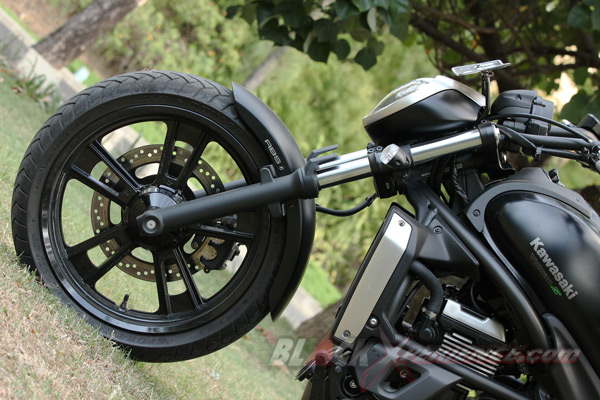Kelebihan Kawasaki Vulcan S lainnya ada pada pemakaian velg 18 inci di depan dan 17 inci di belakang yang semuanya dipadankan dengan disk brake. Tak lupa fitur Anti-lock Brake System (ABS) juga sudah menjadi paket standar dari Kawasaki Vulcan S yang dijual KMI ini. [Pra/timBX]