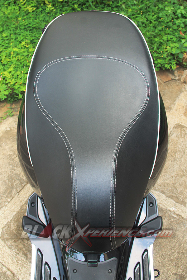 Sementara itu, untuk ruang penyimpanan barang utama, terletak dibagian bawah jok pengendara. memiliki kapasitas sebesar 24 liter, ruang penyimpanan ini mampu menampung satu helm full face. Disamping itu, bagasi ini rupanya bisa digunakan untuk melongok bagian injection yang disematkan pada Vespa Sprint tersebut.