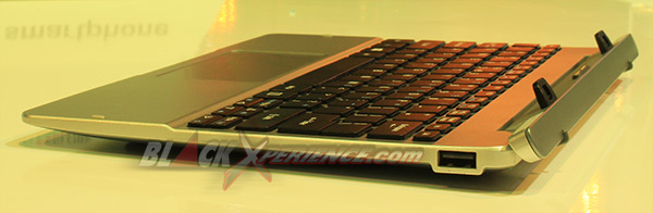 Dock keyboard ini memiliki port USB 2.0 di bagian kanan jika pengguna ingin menggunakan USB flash drive atau mouse.