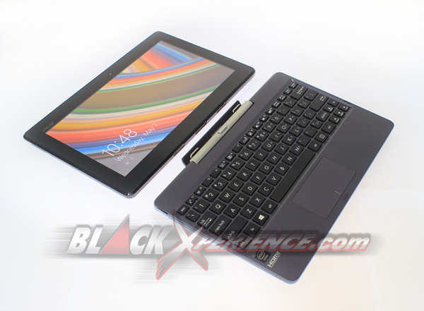 Selain unit tablet, T100 juga dilengkapi dengan dudukan keyboard fisik. Hal inilah yang membuat T100 memiliki julukan Transformer. Tablet T100 ini dapat dengan mudah dipasangkan dengan papan ketik bawaannya ini hanya dengan bantuan satu tombol saja.