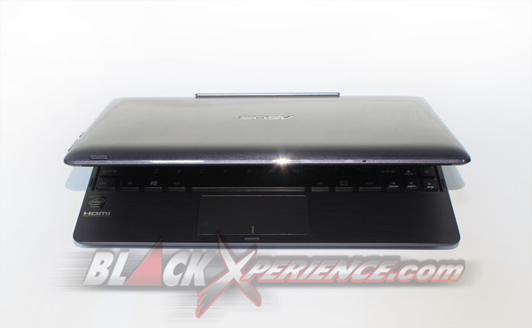 Dudukan keyboard ini hampir seluruhnya terbuat dari plastik bermotif metal yang solid. Saat tablet terpasang tablet ini terlihat dan berfungsi layaknya notebook biasa. Engsel pada dudukannya pun kuat dengan sudut lipat yang cukup lebar sehingga nyaman bila digunakan pada pangkuan maupun di atas meja. Menariknya, keyboard ini berbobot 520 gram tanpa adanya baterai cadangan di dalamnya dimana cukup berat. Apalagi bila digabungkan dengan tabletnya menjadi 1.07 kg.