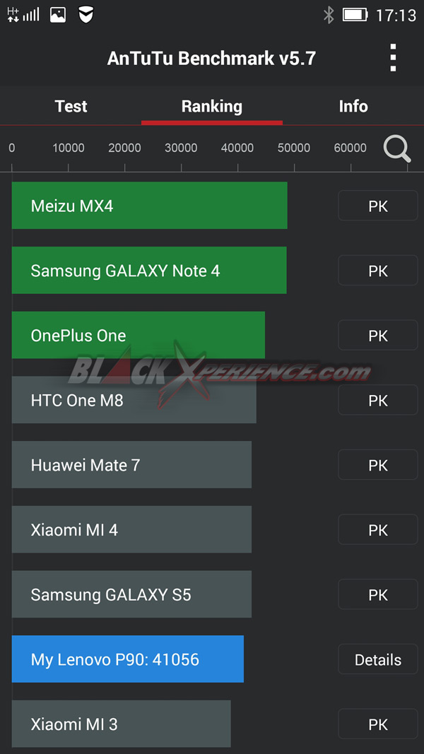 Soal performa tidak perlu disangsikan lagi, P90 dipersenjatai dengan prosesor 64-bit quad core Intel Atom Z3560 dengan kecepatan 1.8GHZ dipadukan dengan RAM 2GB. Beruntung kita sempat mencoba performa perangkat ini dan melakukan benchmark. Hasilnya cukup mengesankan, Lenovo P90 tembus angka 41 ribu, di mana sejajar dengan smartphone kelas atas.