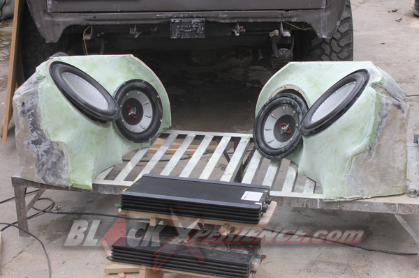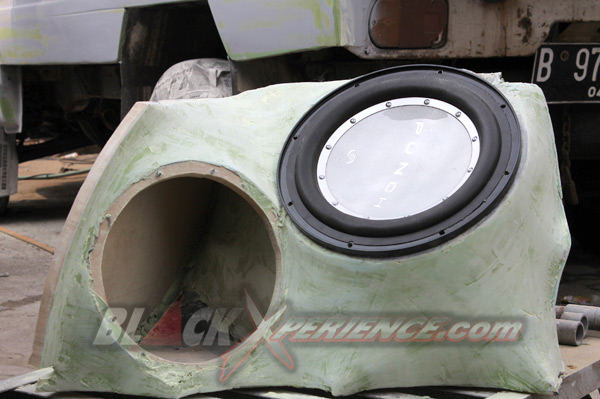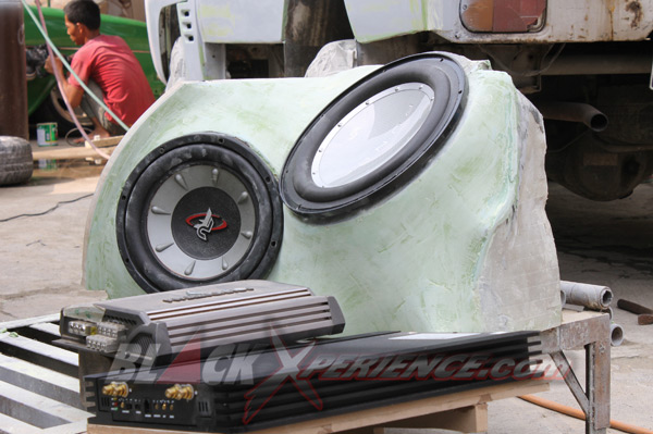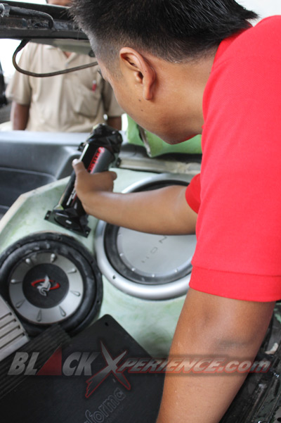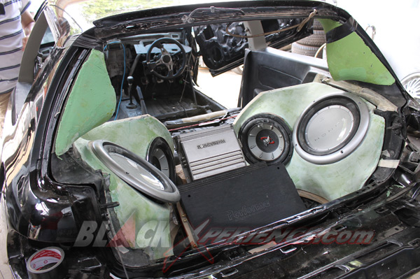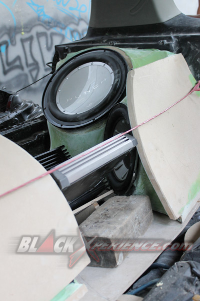 Keahlian sang instalatur teruji di sini, pasalnya, Rudi, sang owner juga menghendaki keberadaan jok belakang yang tetap pada fungsinya. Sehingga pengaturan dan artistiknya dapat dibuktikan setelah semua komponen parts audio terpasang. Ukuran boks juga dapat dilihat dari luasnya bagasi, untuk menyiasati hal ini maka dilakukan penyusunan dua buah subwoofer 12 inci dibagian terdepan dan 10 inci di belakangnya. Selanjutnya dibagian tengah ada prosesor, power danjuga kapasitor bank. Seperti layaknya sebuah penataan sound system panggung konser.