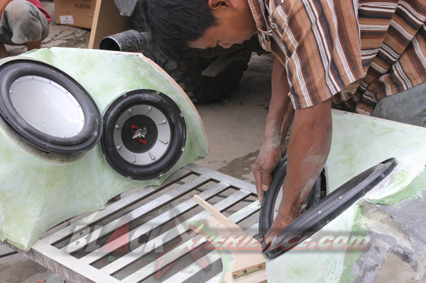 Sang instalatur audi, Gino, mengaku memilih bahan berdasar dari papan dengan alasan tertentu, diantaranya untuk menghasilkan kualitas suara yang jauh baik. Sebagai finisihing penataan sound audio tersebutjuga dipadukan dengan kosmetik yang dibuat dari bahan acrilic lengkap mengitari sepanjang sisinya dengan lampu-lampu menarik. Sehingga tampak berkesan gelamour.