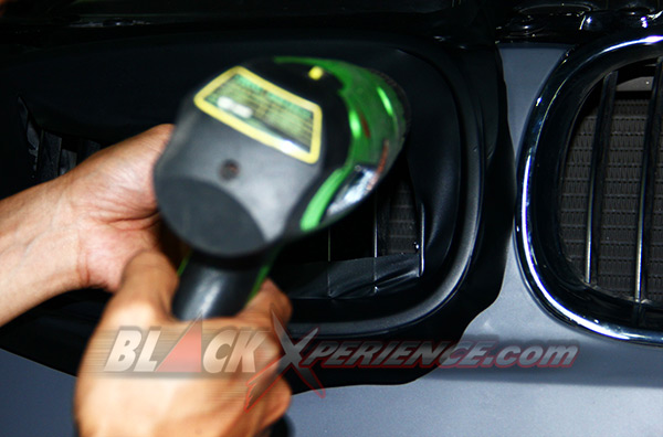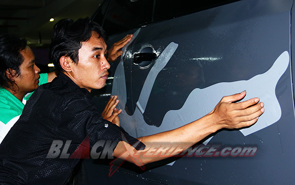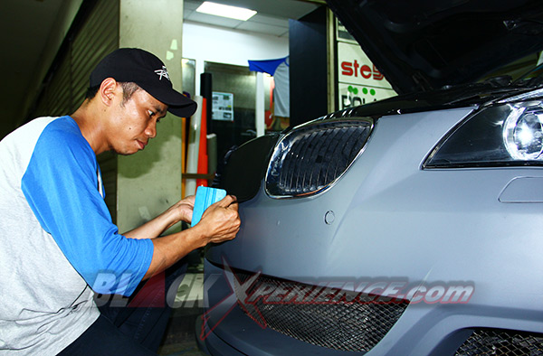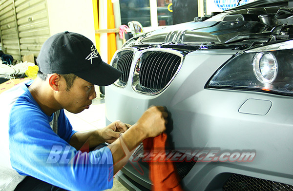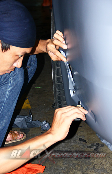 Bumper merupakan bagian tersulit dalam proses wrapping cutting stiker, diperlukan ketelitian dan kesabaran dalam hal ini. "Bagian bumper terutama depan biasanya membutuhkan waktu lebih lama dibandingkan dengan sisi lainnya dari sebuah mobil. Karena lekukan bodi pada bumper biasanya lebih banyak dan menuntut semua sisinya ikut di wrapping," ujar Imam.