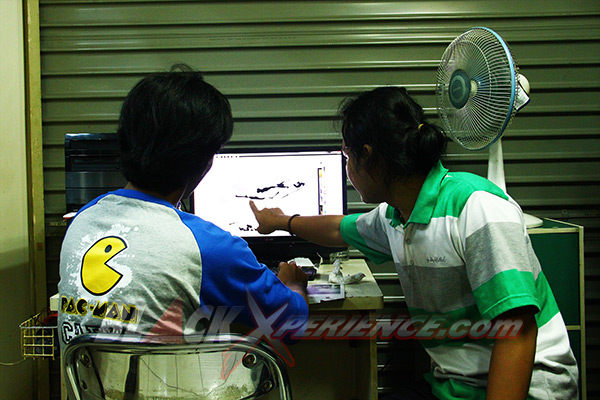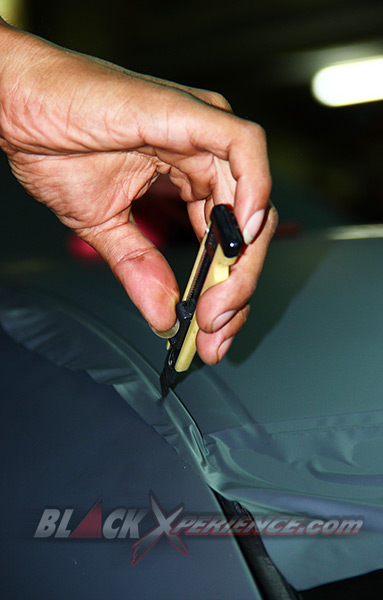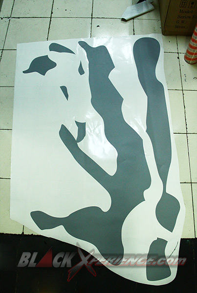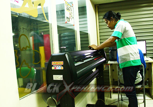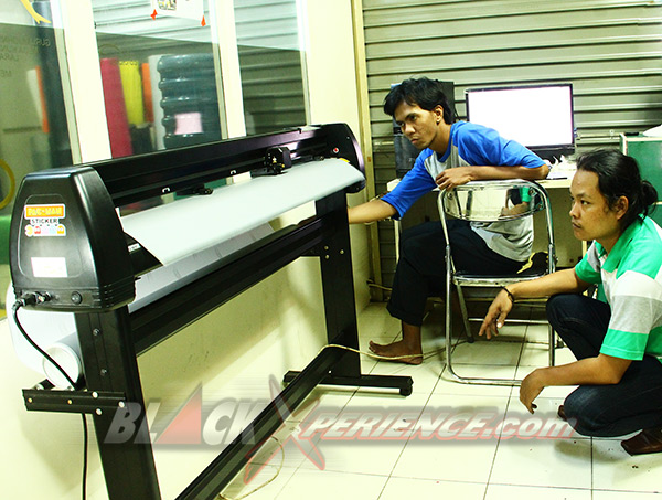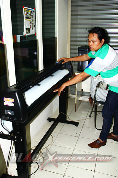 Target kerja selanjutnya tertuju pada persiapan bahan sticker, dalam hal ini cutting sticker pun berjalan. Seluruh desain yang sudah disesuaikan dengan skala pada bodi mobil langsung di-print out melalui mesin cutting untuk mendapatkan pola garis yang siap dipotong, sementara yang tidak terpakai haruslah dibuang. Inilah salah satu alasan mengapa wrapping cutting stciker tergolong sedikit mahal, karena memang membutuhkan banyak bahan sticker dalam penggarapannya.