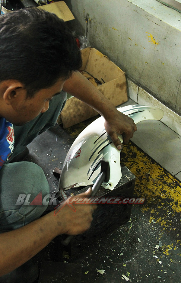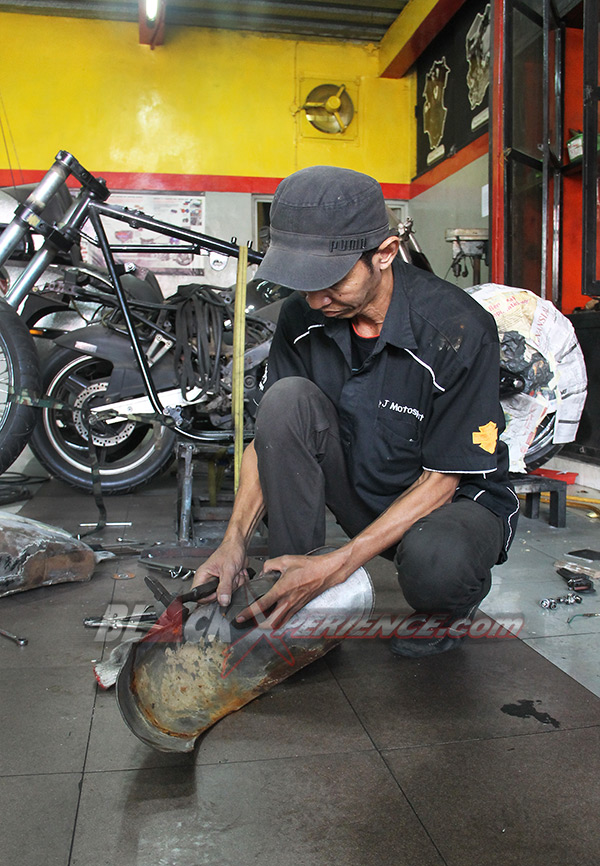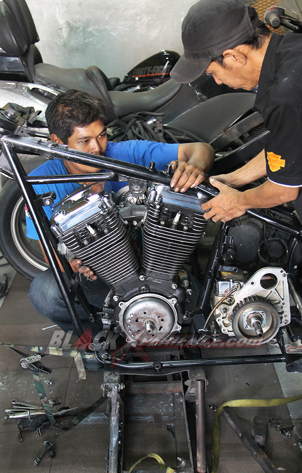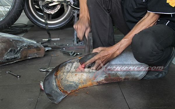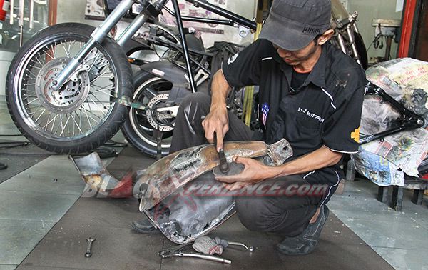 Kelanjutan modifikasi Harley-Davidson Softail EVO alias "Tut-tut Train" terus mengalami perkembangan. Selesai pembuatan rangka maka kini giliran bodi yang mulai memasuki tahap penggarapan. Fuel tank dan fender di mal ulang dari bahan yang tersedia, untuk selanjutnya dibentuk sesuai dengan desain yang direncanakan.