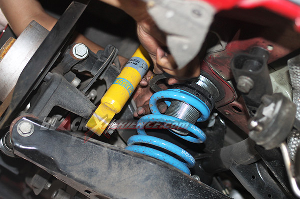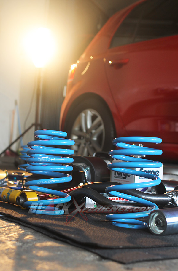 Mengingat hal itu, maka Dalvin pun membidik sektor kaki-kaki untuk di-upgrade sesuai kebutuhan. Suspensi diganti menggunakan coilover dari Billstein, menurut Dalvin produk Jerman tersebut memiliki kinerja baik. "Karena Billstein cukup berpengalaman di dunia suspensi, lebih dari 60 tahunan, kemudian saya pikir kinerja suspensi cukup saya percaya karena sudah ada beberapa mobil yang kita aplikasikan dan saya cukup memahami karakter dari suspensi tersebut dibeberapa mobil yang sering kita garap", ujar Dalvin Kartawidjaja, PIC Project modifikasi VW Golf ini.