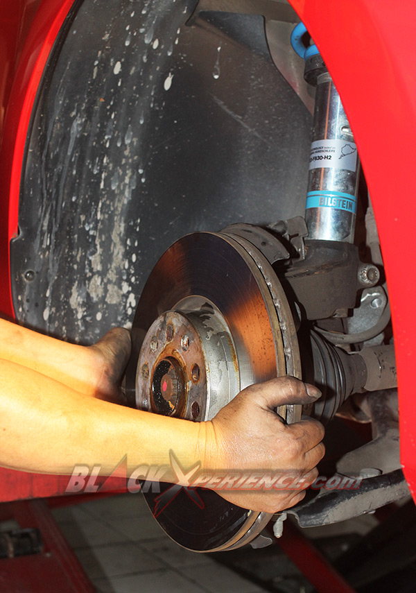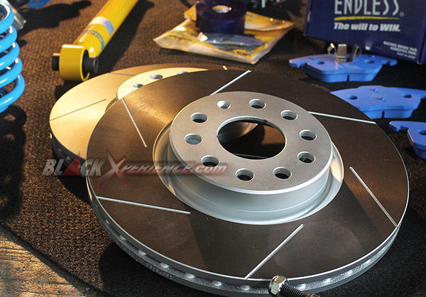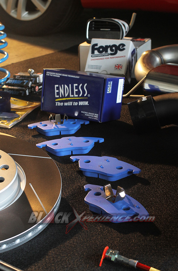 Pengereman juga harus diganti supaya dapat bekerja maksimal dan mampu menyesuaikan dengan kondisi temperatur di saat sedang melakukan aktivitas track day. Endless tipe CCRG dipilih karena mampu bertahan di temperatur tinggi yakni antara 50 - 800 derajat Celcius. Nah guys, mesin sudah cukup bertenaga maka selang rem standar Volkswagen harus diganti agar bisa menahan tekanan dari panasnya minyak rem. Selang rem yang dipercaya Dalvin yakni Goodridge, ia menyakini dengan piranti tersebut mobil dapat dipacu hingga 10 putaran lebih saat track day.