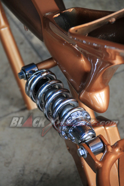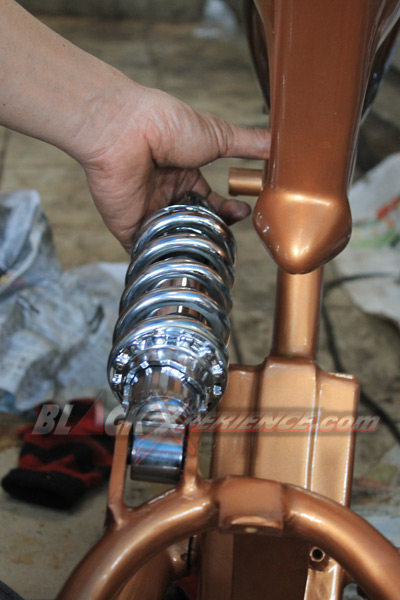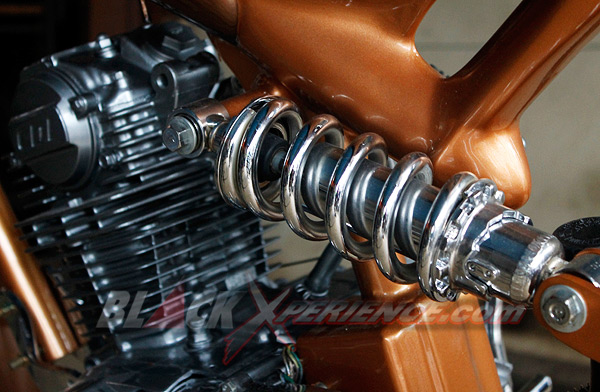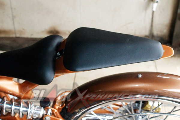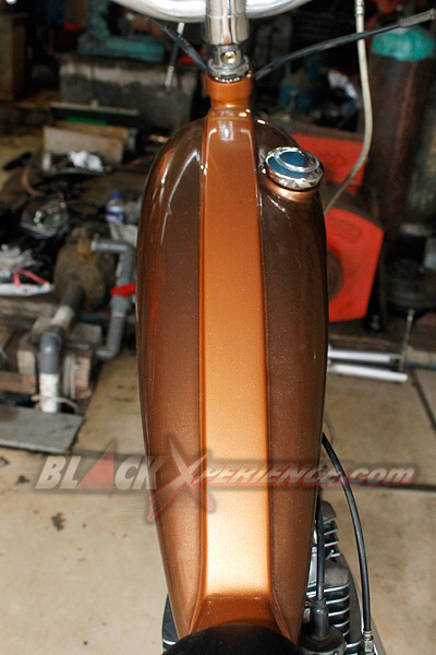 Exterior: Cat body coklat, pernis Hs Spies hecker, custom bodi kit, custom duck tail, custom roof spoiler, Custom grill, custom wide body, dpn 3 cm, belakang 5 cm, custom foglamp projector, custom muffler, custom eyelid, custom stoplamp LED, custom Spion, DAD bonnet, DAD emblem executive oval ornament type garson, 19 inci Black bandit, custom fander vin, list chrome Noblese, bagasi pleumatic