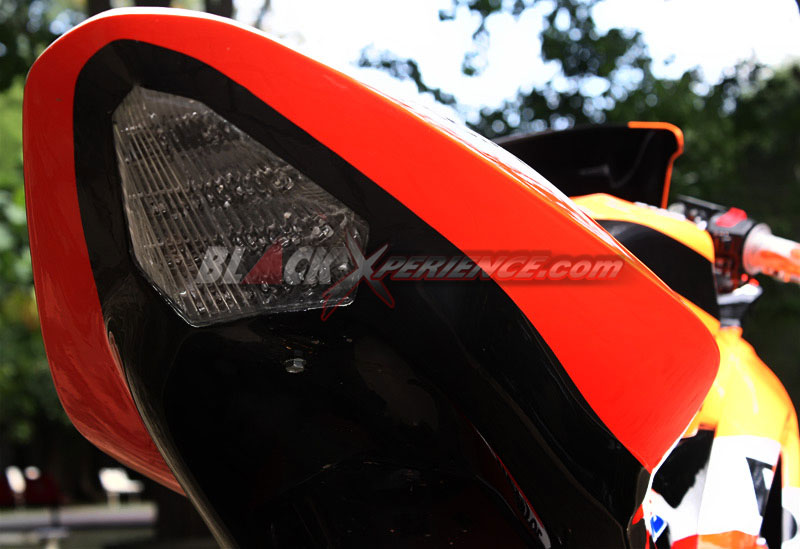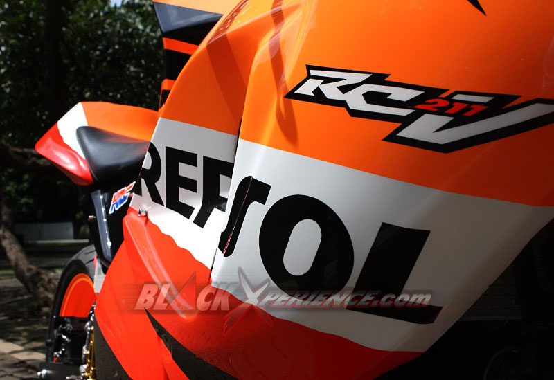 Tak hanya sampai pada proses penggarapan bodi saja, sisi lain yang turut diubah berupa tangki, supaya serasi dan presisi dengan lekuk fiber pada bodinya. Sementara itu, langkah lain yang diterapkan untuk menunjang performa Honda Repsol Stoner pada CBR 250 tersebut berupa penggunaan spare part racing dan juga beberapa aksesoris bernuansa balap. Perangkat-perangkat tersebut terlihat pada setang, foot step, knalpot hingga grip dan juga tutup tangki yang mengadopsi milik Ninja. Pembungkus GP Style lainnya yang cukup berperan ialah lingkar ban Battlax BT92 pada rodanya. Setidaknya kehadiran piranti tersebut mampu menutupi kaki-kaki yang masih mengandalkan produk pabrikan.[nus/timBX]