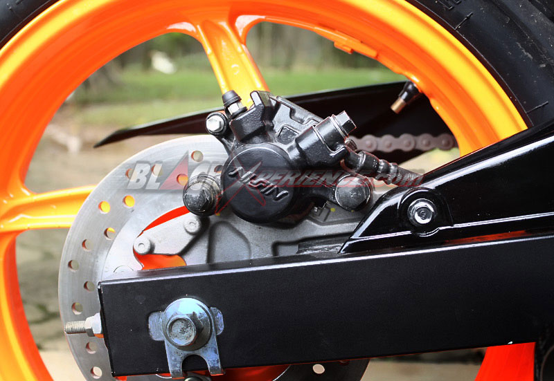 Diperlukan trik berupa pemotongan rangka pada tulang belakangnya kurang lebih 10 cm guna membuat penampilan kian gahar dan menungging. Permasalahan selanjutnya ialah bentuk dan ukuran tulang belakang diatas spatbor Honda CBR 250 lebih tipis, alhasil kurang sedap dipandang. Diperlukan kreatifitas tersendiri guna mengatasi hal tersebut, cara jitu yang digunakan Tomi ialah membungkusnya dengan fiber dan ditutupi warna kontras dengan bodi bagian samping. Kehadiran warna bodi oranye, hitam, merah dan beberapa aksen kuning khas "kuda besi" Stoner jelas nampak menghadirkan karakter tersendiri bagi CBR 250 ini.