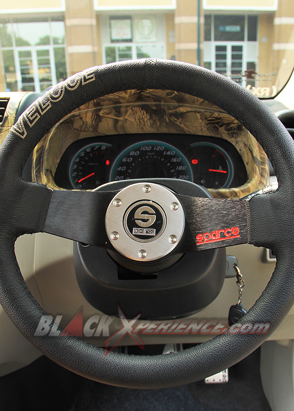 Interior : Custom Re-Trim Camo skin Leather with Mb-Tech Saddle Colour, custom Hydrographic Art Camo Head Unit Frame, custom Hydrographic Art Camo Speedo meter Frame, custom Hydrographic Art Camo Door+Power Window Frame, Sparco Veloce Streering Wheel, Sparco Pedal Pad, Sparco Titanium Shift Knob, Travelling, water Reservoir Camo Bag, travelling camo matras, kotak peluru
