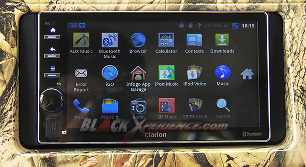ICE & Multimedia : Head unit Clarion AX-1 Android Full System Media Wi-fi with GPS Function, Trans Audio 2 Way 6,5 inci Component Pasive Speaker, 2 pcs Trans Audio 8 inci Active Subwoofer Bass Tube, Bass Fire capasitor bank, XCS-3 volt stabilizer, custom tweeter di Pilar A, custom Wi-Fi Modul operated, custom Window Closer Module, Samsung Galaxy Zoom Operated Wi-Fi Smart Controller