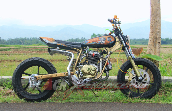 Musibah kabakaran yang menimpa bengkel Yusuf Adib Mustofa menginspirasi modifikasi Honda GL-Max yang satu ini. Karena itu pula, sang Ride dari bengkel Psycho Engine, Purbalingga ini diberi nama Anoman Obong. Dari puing-puing dan abu sisa kebakaran tersebut, salah satu yang tersisa adalah rangka sang GL-Max. Secara inovasi, ide sang builder, Yusuf Adib Mustofa memang patut diacungi jempol, Honda GL-Max ini telah mengusung dapur pacu V-Engine ala moge. Semua komponen sudah mengalami proses custom. Yuks guys, kita bedah motor ini.