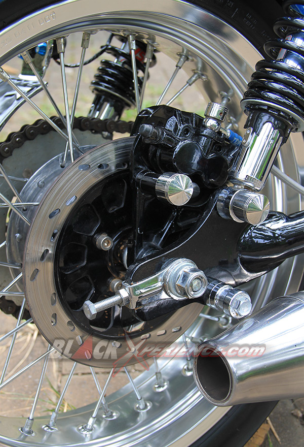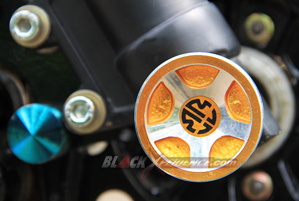 Memperkuat modifikasinya, suspensi lama dipensiunkan dan diganti dengan up side down. Sedangkan shockbreaker belakang menggunakan produk aftermarket YSS. Selanjutnya Nur Cholis menginginkan tampilan gambot pada bagian sektor roda, alhasil velg Champ R17 dan TK R17 dengan lebar 4, 25 inci dipasangkan di roda depan dan belakang.