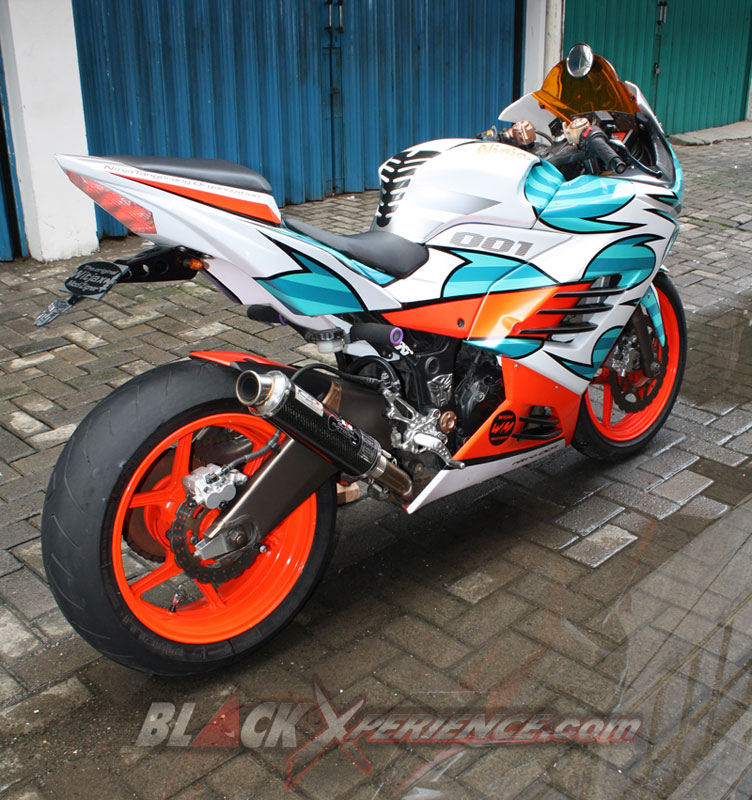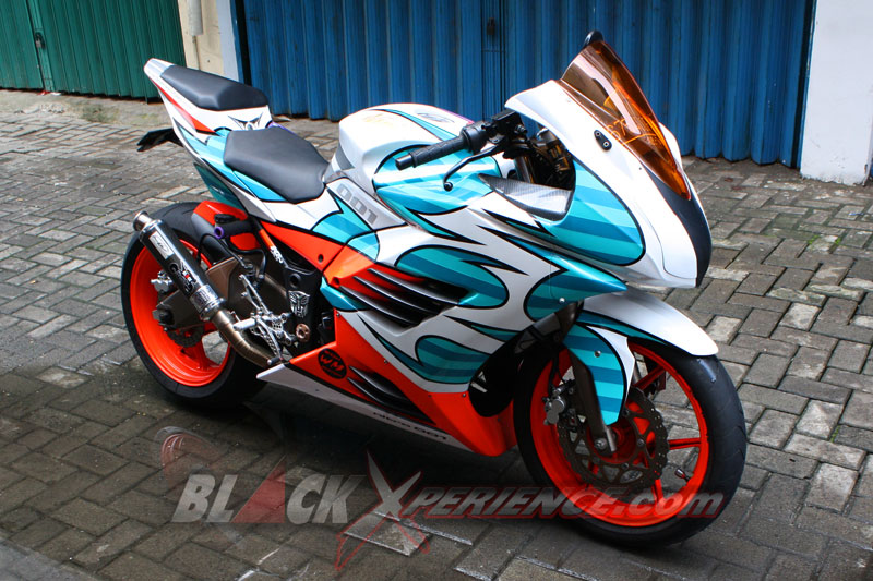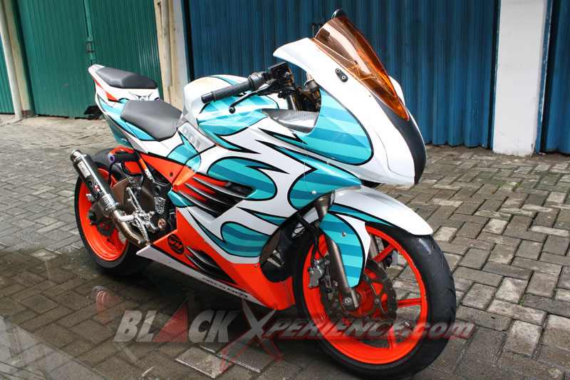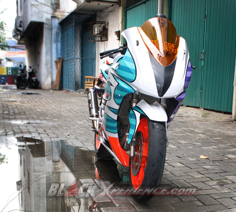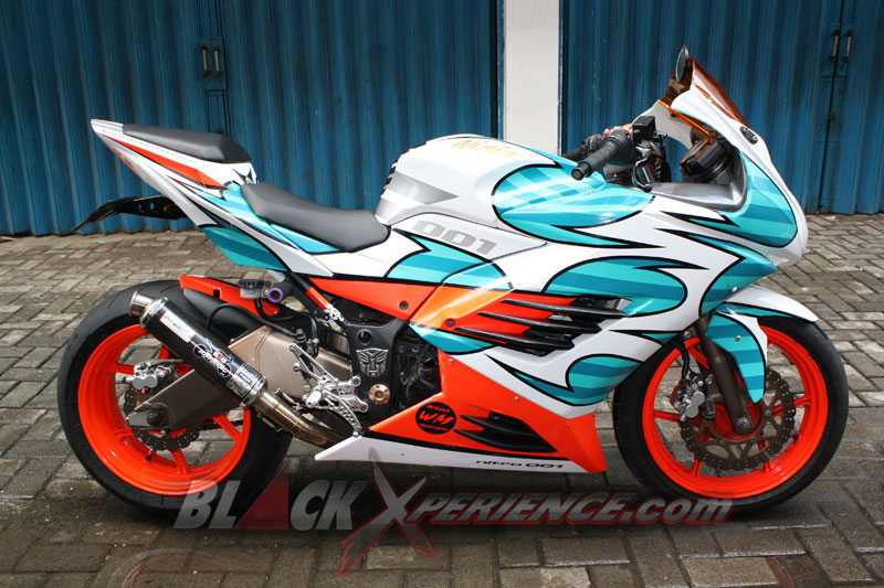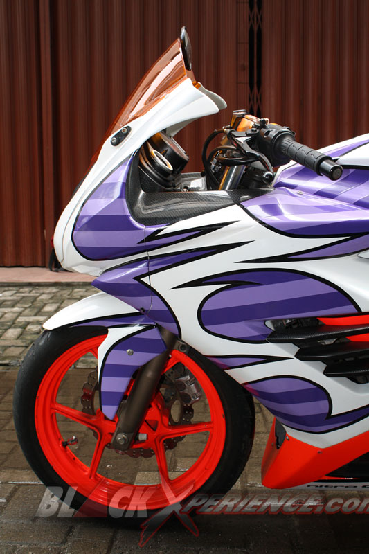 Wajah Ninja kini terlihat sangat eyechatcy dan unik. Sisi kiri tampak warna ungu mendominasi dipadu kelir putih dan oranye, sedangkan grafis warna biru laut yang juga dipadu kelir putih dan oranye mewarnai sisi kanan. Dengan model grafis seperti ini membuat Ninja tampak seperti motor yang berbeda jika dilihat dari satu sisi. Sangat unik sekali. Wicak mengaku dalam penggarapannya memakan waktu hingga dua bulan. Bukan tanpa kendala dalam membangun motor ini, Wicak mengaku kesulitan yang dihadapi saat memasang swing arm dan urusan dapur pacu. "Kesulitan paling pada penyetelan arm dan penggarapan mesin." akunya.