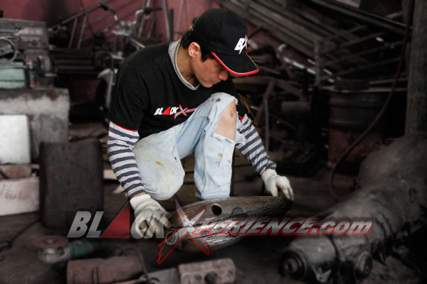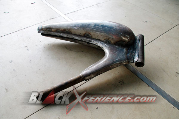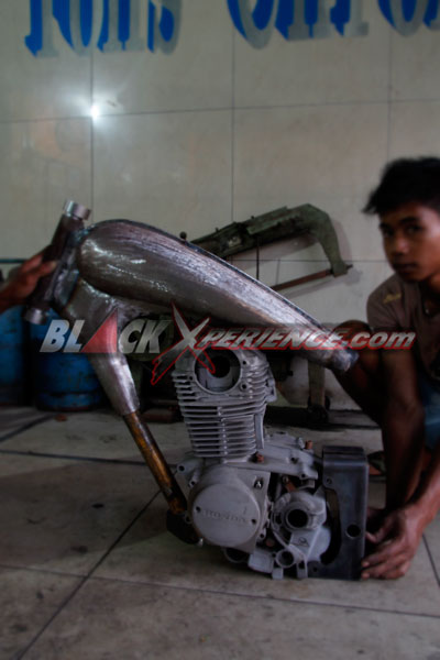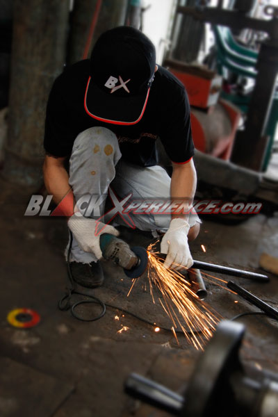 Menguatkan karakter dan tema dragster setang jepit yang ditunjang dengan handle grip Kitaco melekat rapi didepan. Semakin kokoh berkat hadirnya suspensi up side down Combis, tampang shock depan Combnis sedikit unik karena terlihat uliran per dibagian bawahnya, dan inilah yang menjadi salah satu alsan mengapa dipilihnya. Kemudian kesan drag semakin mengental saat jok asli telah dibabat habis dan berganti acrilic tepat dibawahnya terdapat tangki custom. Meski telah sangat minimalis dalam hal bodi eksteriornya, namun tidak terlihat pelubangan pada bagian sasisnya.