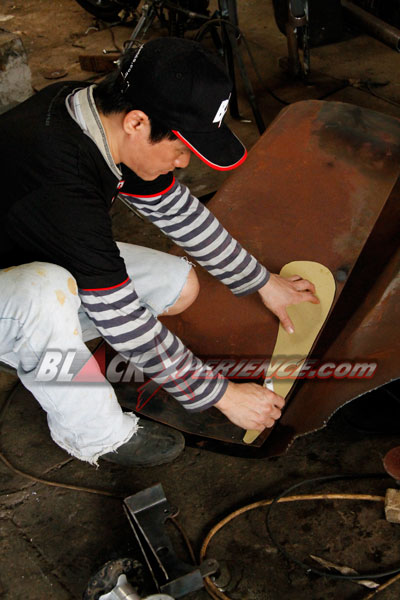 Bodi sudah pasti banyak mendapat sentuhan, mulai dari cover bodi orisinil harus dipensiunkan dan diganti perannya dengan bodi Revo sehingga burita makin menunging dan meruncing selaras dengan konsep racing-nya. Sementara bagian tameng depan menggunakan cover Hoda BeAt. Eko tidak serta merta menempelkan cover bodi tersebut begitu saja, melainkan keahliannya dalam bidang airbrush langsung ia tuangkan dengan paduan motif tribal.