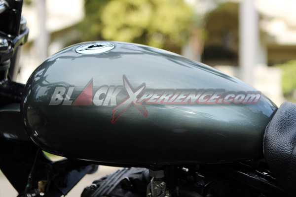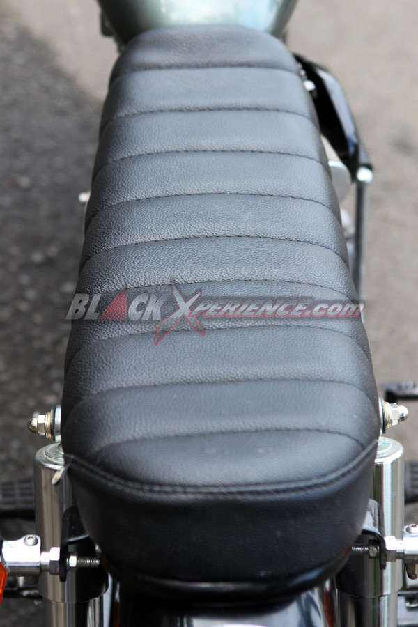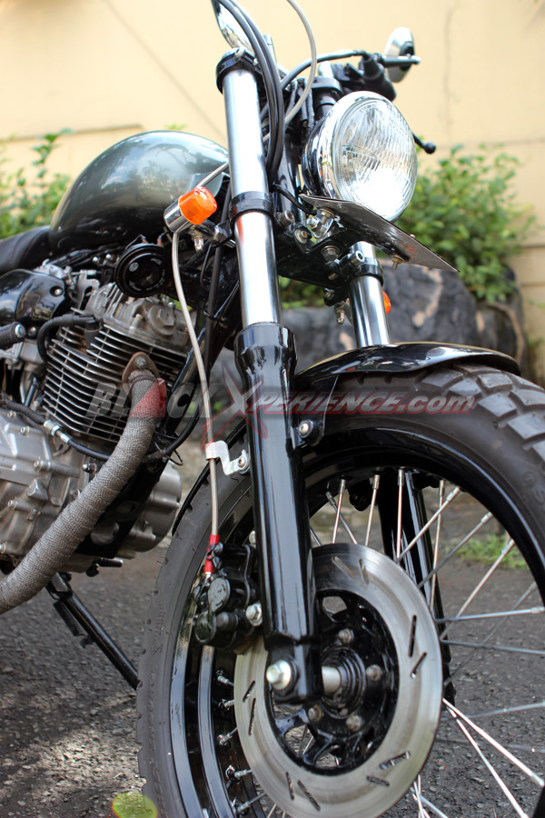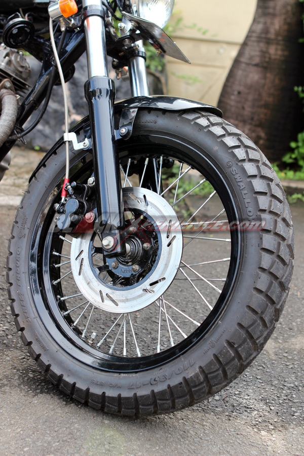 Velg/ban : Custom 3,5x17 (depan), dan 4,0x17 (belakang), ban Swallow 11/70-17 (depan) dan Swallow 130/70-17