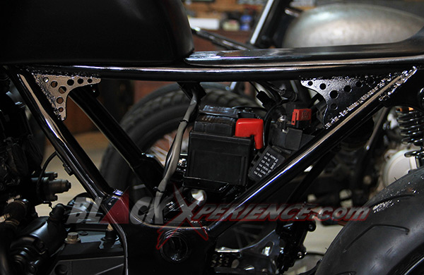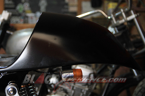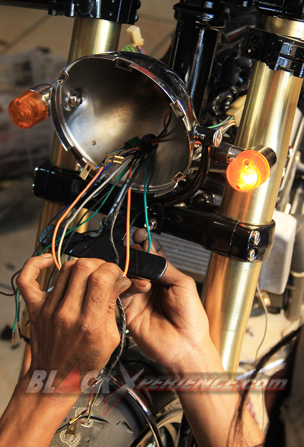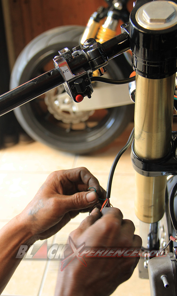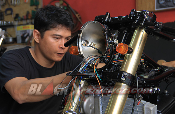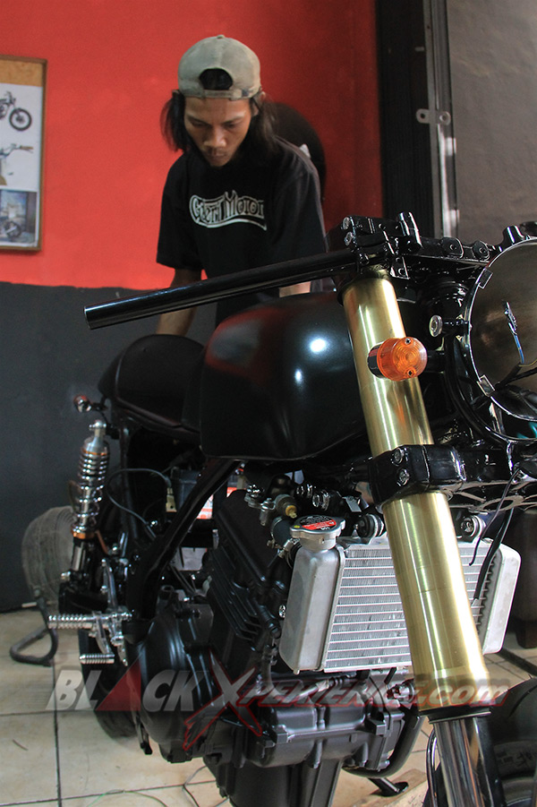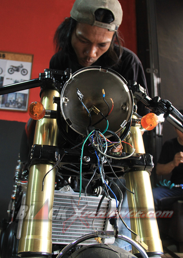 Hampir 90 % bagian sepeda motor ini dibuat ulang. Dimulai dari bagian rangka yang dibuat sendiri dengan bahan besi seamles berukuran 30 mili. Rangka ini dibentuk bermodel rigit yang merupakan rangka khas untuk motor berjenis chopper. Setelah rangka selesai, pengerjaan dilanjutkan dengan mendesain tangki agar sesuai dengan konsep, dan tangki ini dibuat sendiri dengan bahan dasar pelat pc. Bagian setang juga nampak tak mau kalah, agar mendapatkandesain dan riding potition yang pas, setang dibuat kastem dengan bahan besi seamles.